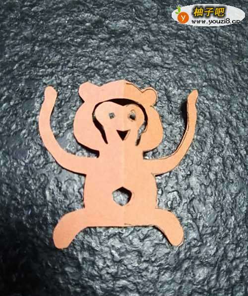 7第七步,最后把剪裁完成的小猴子整理好展开。可爱的小猴子就剪裁出来了。
