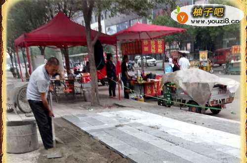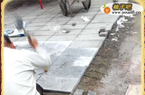 2然后我们根据路沿石或者铺装两侧的地面高度挂线来控制铺装的石材的高度和水平缝隙的位置。