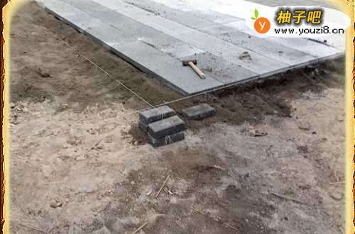 3线放好以后我们把干硬砂浆铺到需要铺装石材的垫层上,高度与所需要的高度之间应比石材的厚底低1-2cm。