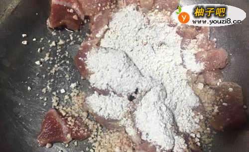 首先将瘦肉切成薄片,加入一勺土豆粉抓匀
