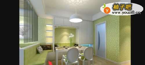 4户型极小时,还可以利用飘窗的位置,将其打造成长条座椅的形式,与餐桌共用,这样能大大节约房间的空间,很有实用价值。如下图所示。