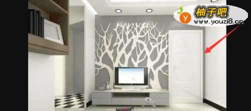 3户型极小时,可以借助一扇门的结构墙,装修成电视墙,无形中就会扩大了空间的使用面积,充分利用了门墙的位置。如下图所示。