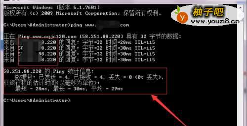 8然后输入 ping 域名(也就是您刚才解析的域名)