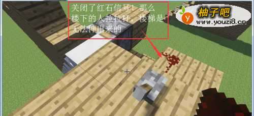也就是说你必须先打开楼上的红石信号!楼下的拉杆发出的红石信号才能发挥作用!进而伸出楼梯!