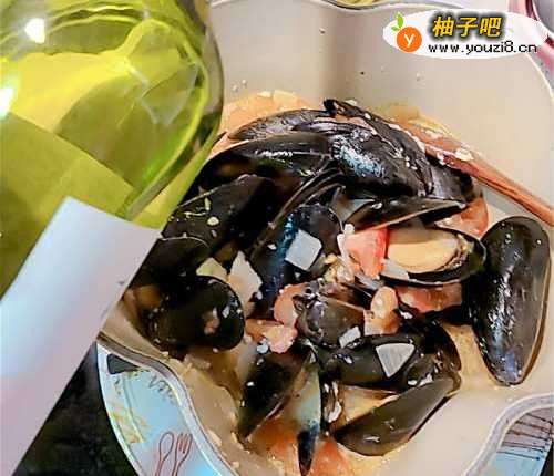 用白酒煮淡菜,味道很清新,入口有海鲜味兼白酒香,配上番茄煮,酸甜味又能突出淡菜的鲜味。