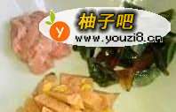 22、火腿肠、皮蛋、瘦肉切块,备用。