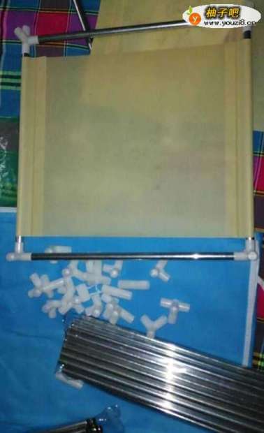 打开快递,我们会看到搭建布衣柜的材料,布衣柜的材料包括A管、挂杆、圆形挂钩、三通、四通、直通、塑料圆钩、层布、布套。