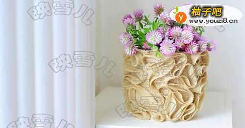 9在麻条边上可涂上些许热熔胶以防脱线。漂亮花盆完工。