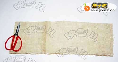 2剪一块长为花盆围长,宽为花盆高度的麻布