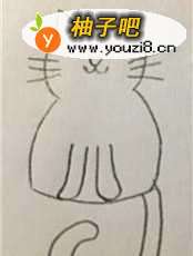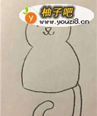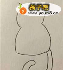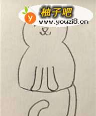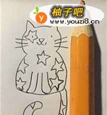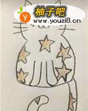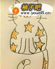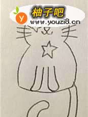 接着在五角星图案小猫身体下面勾出一条尾巴形状。