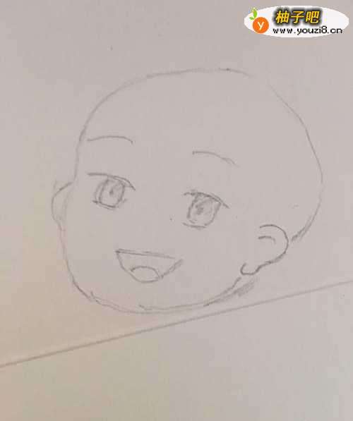 第一步 先用铅笔轻轻打一个一休的头部轮廓 画草图的时候 不要心急 多观察 慢下笔