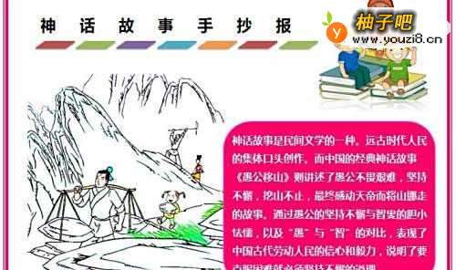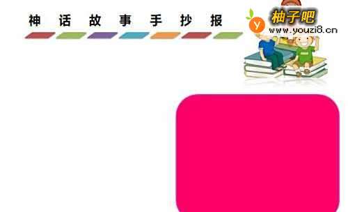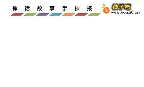 4在【神话故事手抄报】标题的下方右侧处,在框内写上字,如下图所示。