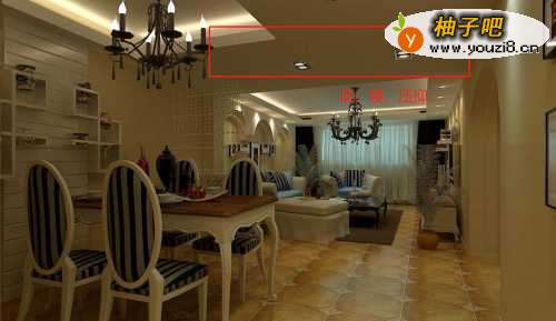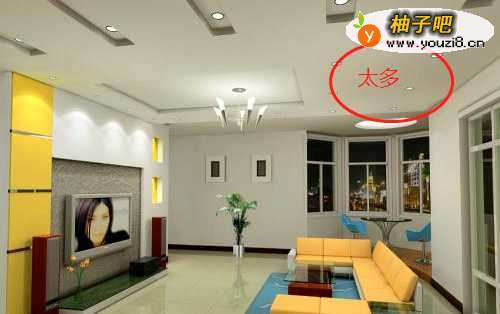 4客厅吊顶过于低矮,会使人有压迫感,影响生活和工作,客厅是家里面流动空间最大的地方,尽量吊高顶。使空间感更大,保证空间有一定的高度。