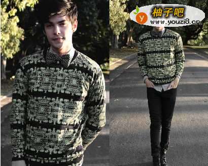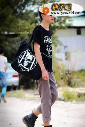 33、如果性格偏外向,可以穿圆领或V领T恤,酷酷拽拽的那种风格,个性的色彩和图案,配水洗磨破牛仔裤,下面穿球鞋或者高帮靴子,很帅!!