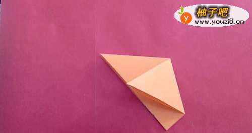 2一长边中间点为轴,平面分成五部分,从一边起四份对折,再对折。