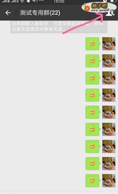 2找到你要解散的群。点击右上角那个小人的形状的图标。
