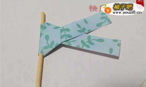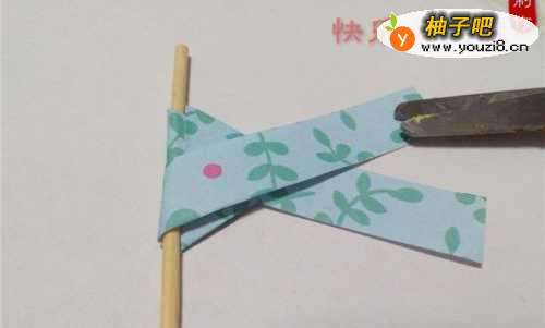 9把长条的两个末端,用剪刀建成如下形状,小旗子就做好了。