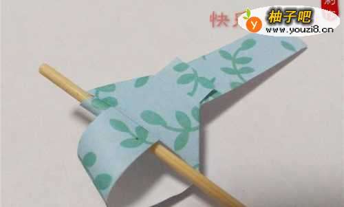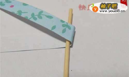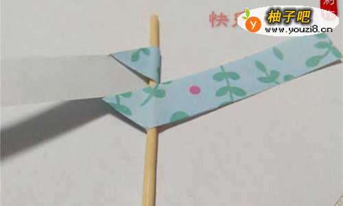 2取出一个棉签棍,把彩纸条如图所示放置。