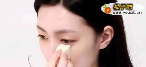 5扫完眼尾以后刷子上的余粉可以顺着眉头和鼻梁两侧轻轻刷一下鼻影,加深轮廓。