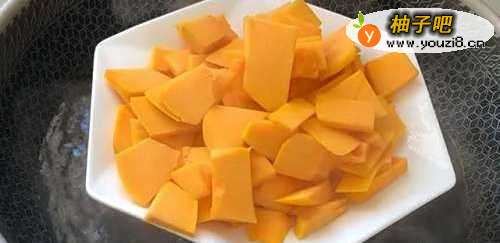 把南瓜去皮去瓤清洗干净后切成薄片,放入碗中上锅蒸熟,大约需要15分钟左右。蒸熟后倒出南瓜中多余的水分,再压成南瓜泥倒入大碗中。