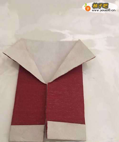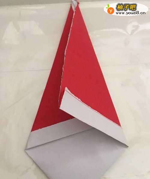 4第四步 再折圣诞老人的衣服 把一张红纸上面向下折1厘米左右 下面向上折1厘米左右 然后竖起来对折