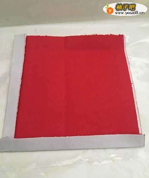 第一步 先把10厘米X10厘米的红纸白纸放在一起 把红纸放在上面 左边向右折1厘米左右 下面向上折1厘米