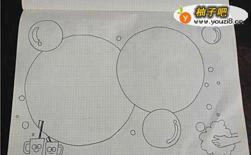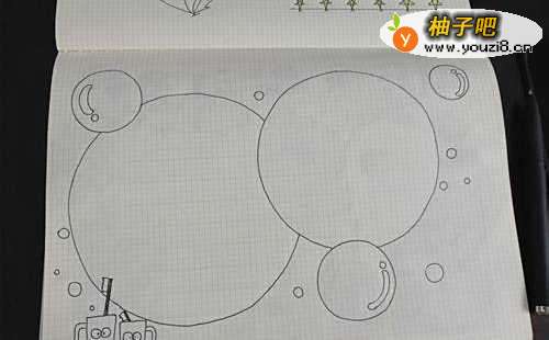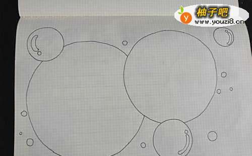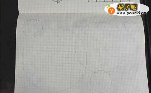 首先准备好绘画用具,我们先用圆规画上几个圆形。