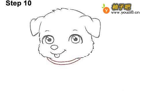 10第10步:在头部下方,为衣领画出两条弯曲的水平线。不要划得太远,否则小狗的领子会太厚。