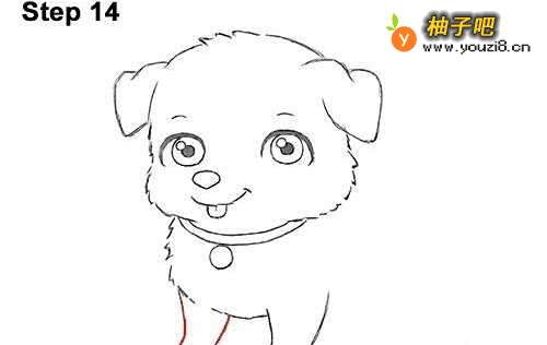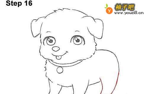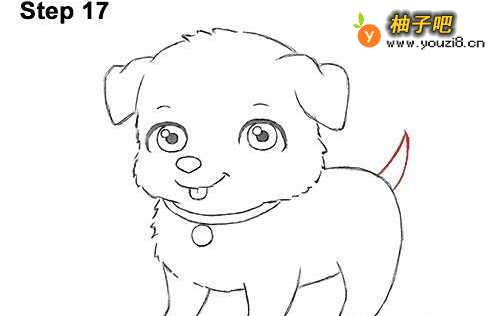 17第17步:在身体的右上方画出两条短小的线,它们来到小狗的尾巴。