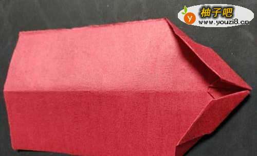 3第三步,把两个小三角形往后面折,按照折痕再折一次。