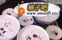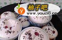 6倒入模具和碗里,上面撒点给熟黑芝麻和蔓越莓干,隔水上锅蒸。