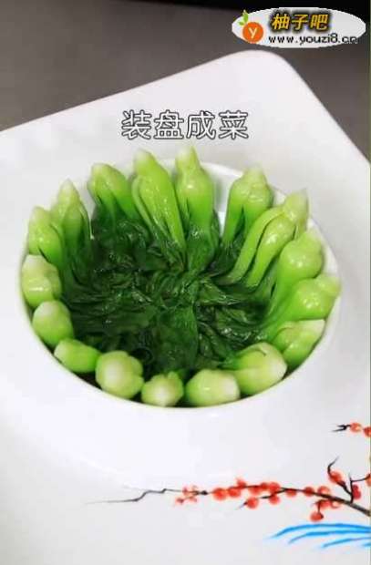 水烧开后放入洗净的油菜心焯水,断生后捞出备用;