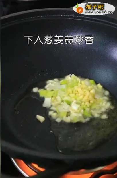 5洗锅下入新油,依次放入葱、姜、蒜炒香;