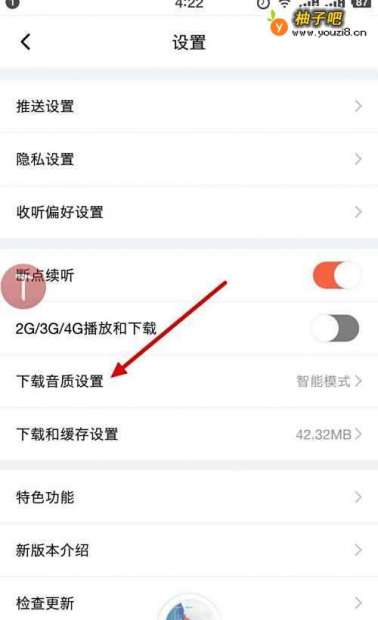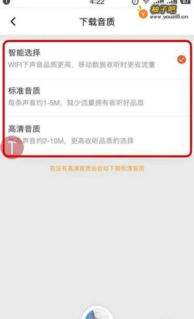 5在下载音质设置中,我们可以看到有三个选项,默认是“智能模式”。