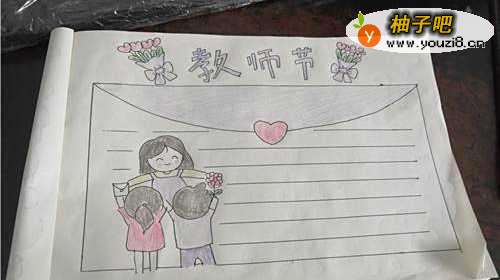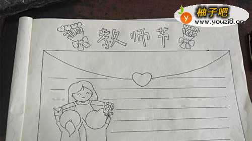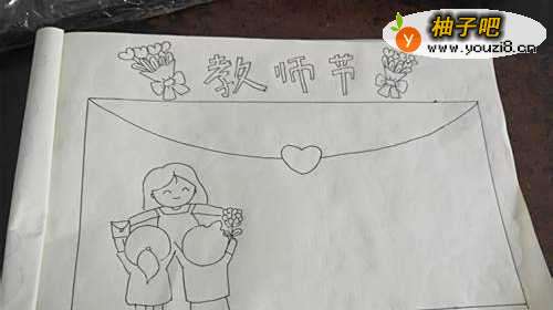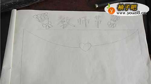 我们先用尺子在纸上,画上一个大的信封,在上面我们写上教师节三个字。