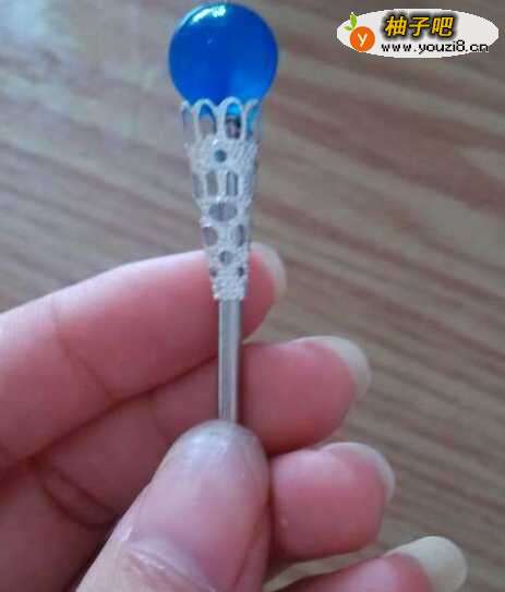 3然后就是做簪子,用一个9针串上簪头绕在簪杆上。