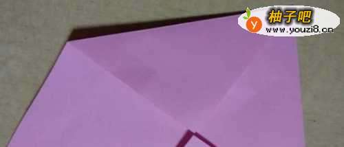 4随后把折好的正方形翻过来,然后把这个小正方形的四个角再往里折,折法和上两次的折法都是一样的。
