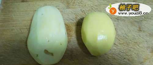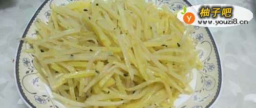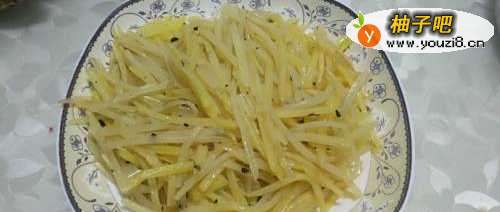3然后用插子插丝,当然也可以手切,手切的要好吃点(味道确实是手切的好),切好放进水中泡一下,去除淀粉!