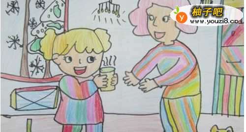 3可以画一幅简笔画,画在家里的情景,一个小女孩看到妈妈下班回来了,给妈妈递上了一杯热茶。