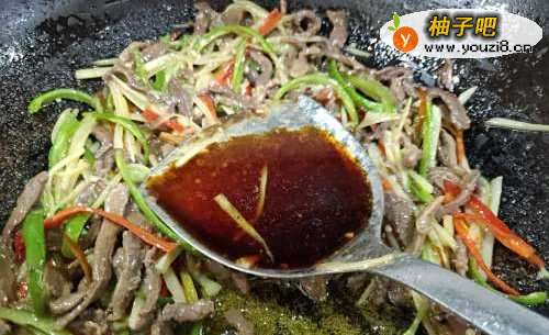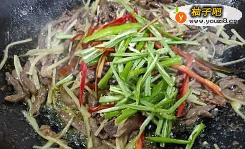 6放入青红椒丝炒至断生