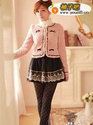 3这款短呢子外套粉嫩嫩的色,加上黑色的点缀,显得更加有味道,气质感的圆领,甜美的蝴蝶结让事件衣服突显甜美清新气质,羞速匠搭配黑色系的小摆裙,与衣衣的黑色点缀形成对比。
