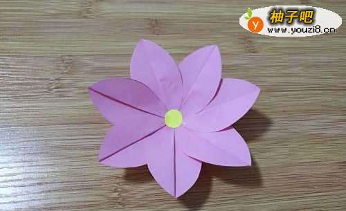 第九步:剪一个圆形花心,粘贴到折好的花上就完成了。
