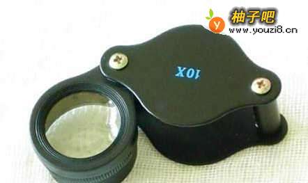 10倍放大镜是鉴定宝石的必备工具,事实上,质检师在鉴定诸多类型物品时都要用到。10倍放大镜是由三个透镜所构成,合格的10倍放大镜应清晰度高,并且 能消除影响观察宝石的球面像差和色像差。使用时,一只手执住放大镜,置于并贴近一只眼睛的正面,另一只手用食指和拇指捏住饰品托架(如为裸石应使用宝石镊 子)并靠近放大镜,直到眼睛可以清晰的观察到宝石。对于裸钻,应用镊子小心地夹紧,防止掉落。