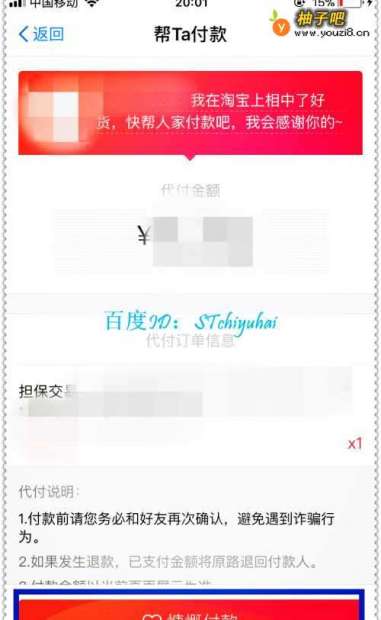 6这里以淘友操作为例,分享给淘友后对方会收到信息,可以点击进入查看详细,确认后点击底部“慷慨付款”。