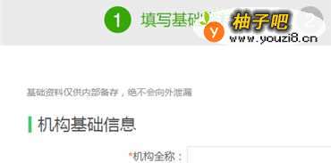 4.填写机构基础信息,包含机构全称和组织机构代码证上传等。