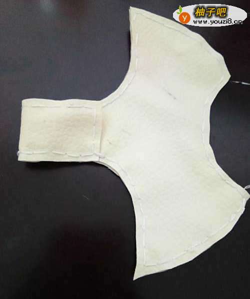 22、裁剪出来的两条背带,反面相对,正面回针法缝制。
