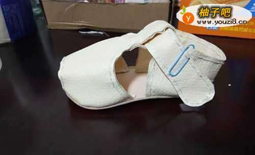 在贴鞋底时可以加厚一点,防止背带和鞋面连接鞋底的缝边会有鼓起来。