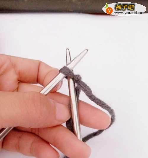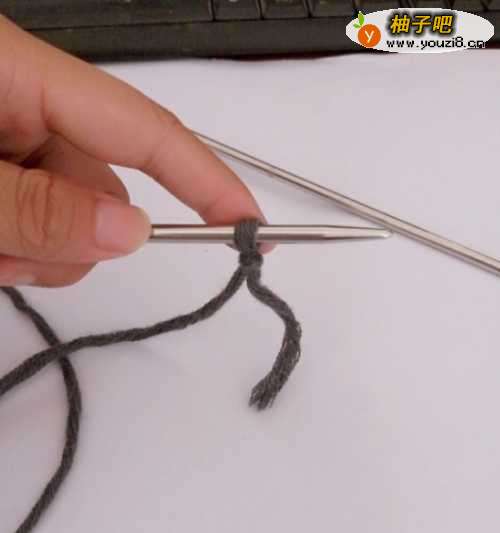 2先起针,打一个150px长的活结套在棒针上,将短的那头置于针的外侧,长的在内侧。
