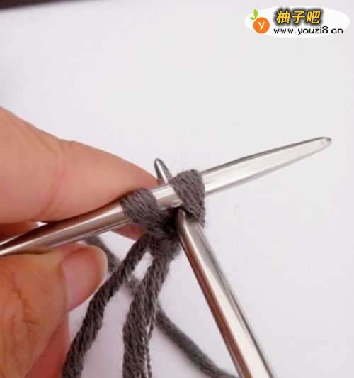 3将右针头往下插进左针的圈里,将长线从右针下面绕到右针上,然后从线圈挑出,上针,将长线从右线下面绕到右线上,然后右针头“往上”插进左针线圈里,将右线和线从圈中挑出。重复起针,一般起8的倍数。