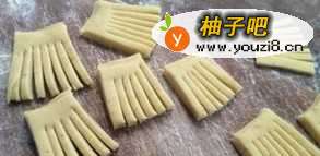 4打开~翻转~利用案板摆出造型和用手捏成如图花样
